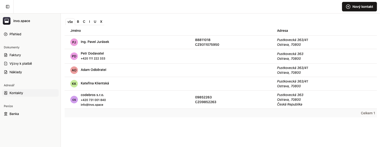 Organizujte všechny své klienty a dodavatele na jednom místě.